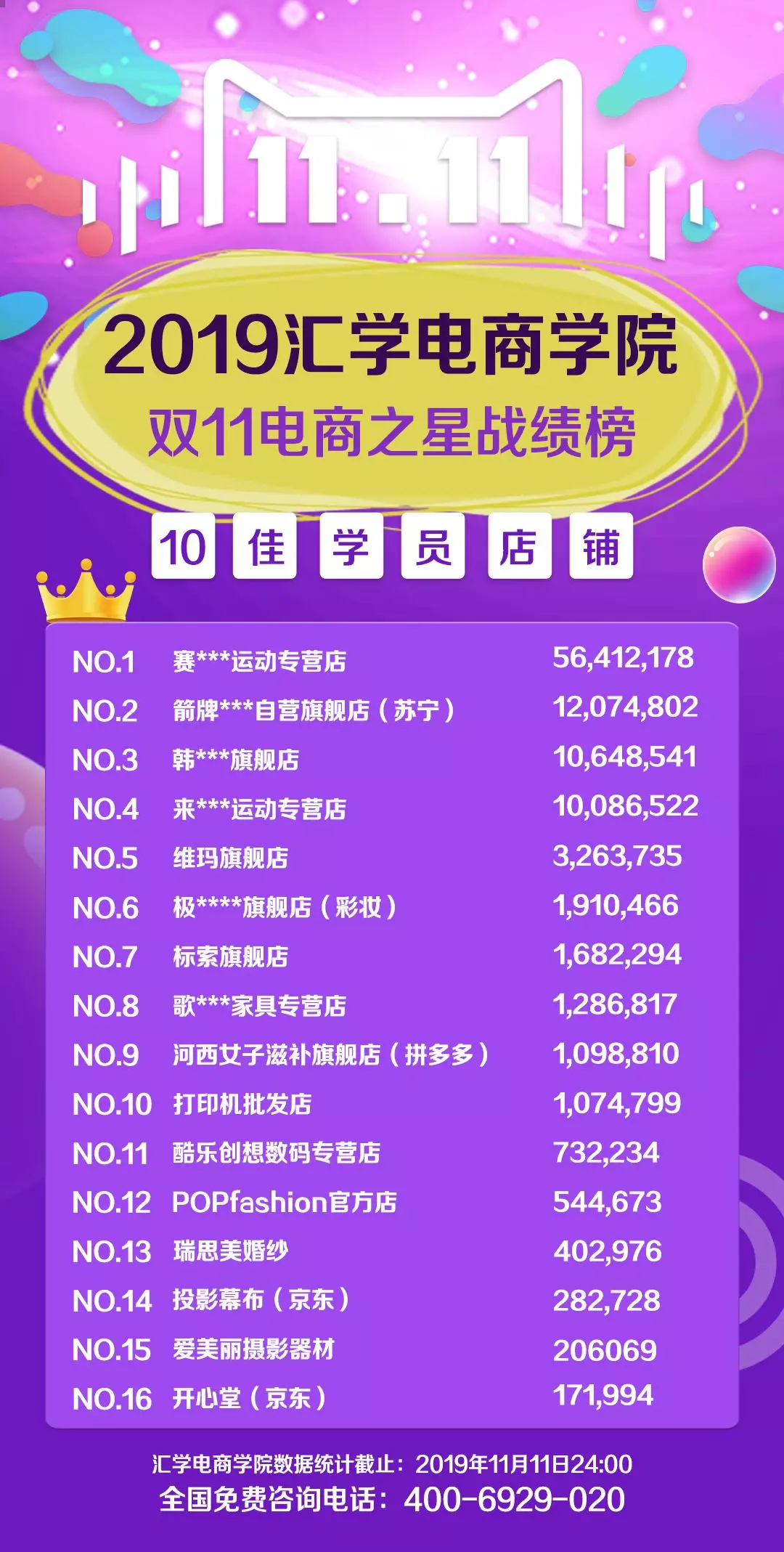 汇学教育2019双11战绩榜公布!